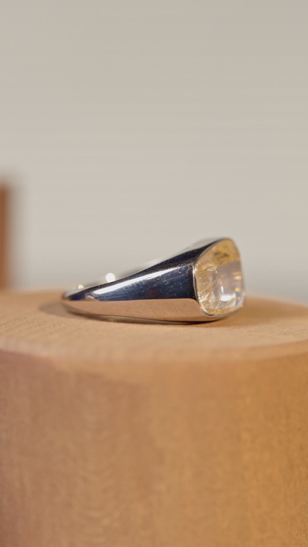デザイナーMarie Westonが考案したオリジナルカットを施した天然石が主役の「Organic Gems」からシルバー素材のリングが登場。石本来の美しさが引き立つフォルムは強さとエレガンスの象徴。きらりと光るアンイーブンシェイプの天然石の個性を、スタイリッシュで洗練された佇まいに仕上げたリングです。性別を問わず身に着けていただけるデザインで、男性にはピンキーリングとしてもおすすめです。「オーガニックジェムズ リング ゴールドルチルクォーツ」
