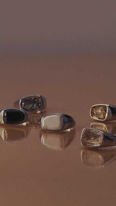 デザイナーMarie Westonが考案したオリジナルカットを施した天然石が主役の「Organic Gems」からシルバー素材のリングが登場。石本来の美しさが引き立つフォルムは強さとエレガンスの象徴。きらりと光るアンイーブンシェイプの天然石の個性を、スタイリッシュで洗練された佇まいに仕上げたリングです。性別を問わず身に着けていただけるデザインで、男性にはピンキーリングとしてもおすすめです。「オーガニックジェムズ リング ハウライト」