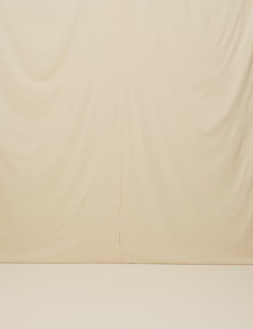 カフタン風のデザインに、からだが細くすっきりと見えるように計算されたシルエットが魅力の夏の光のドレス。胸下で切り替えたトップは、リラックス感があって着心地がよいのに、とてもエレガントな印象です。