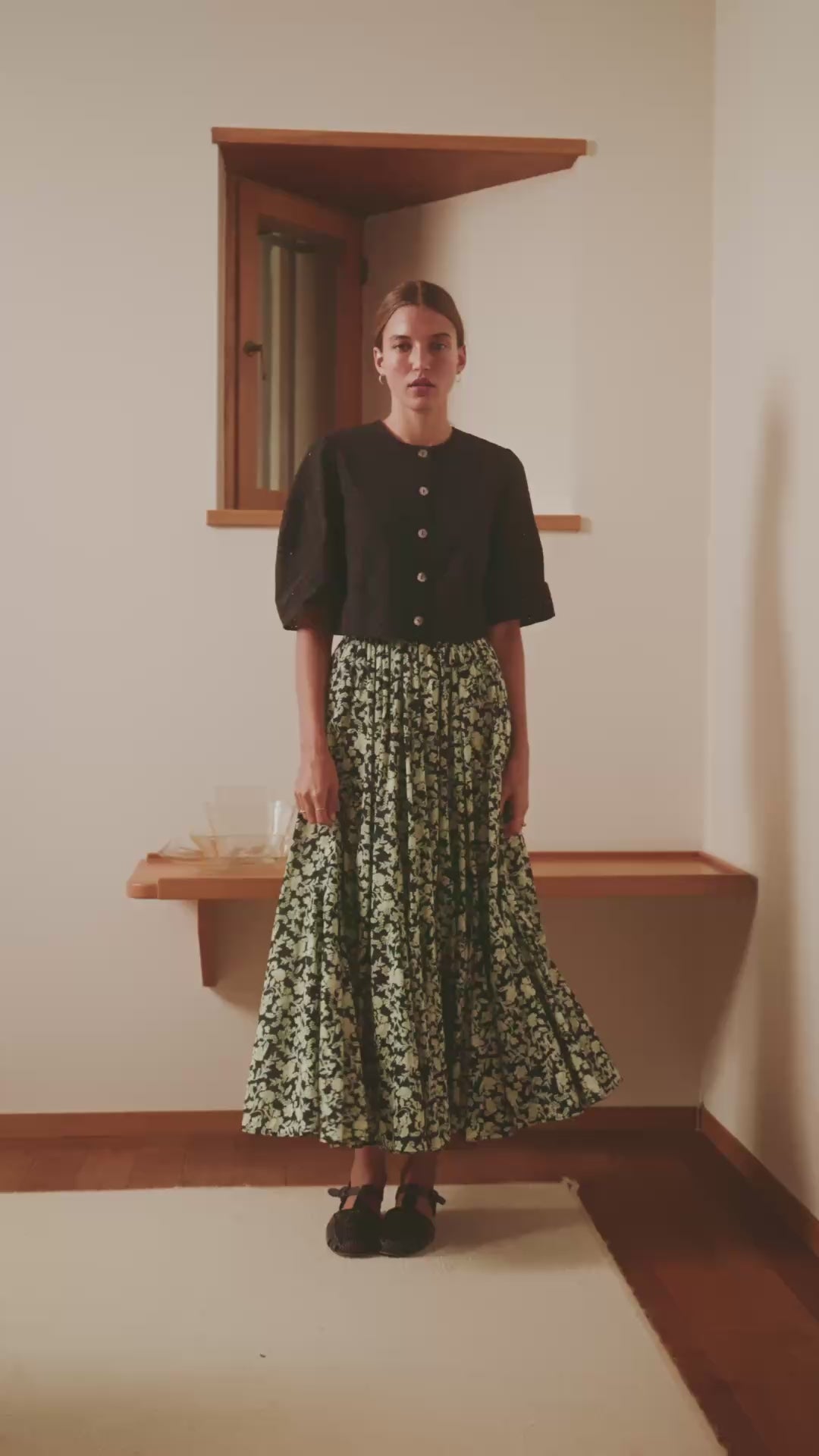 「月影のスカート」 ペイズリーブルーム/ブラック